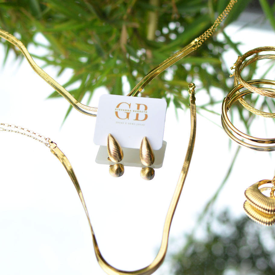 Cordão e Brinco banhados a ouro 18k com 4mm. Garantia de 6 meses no banho. Resistentes à agua.